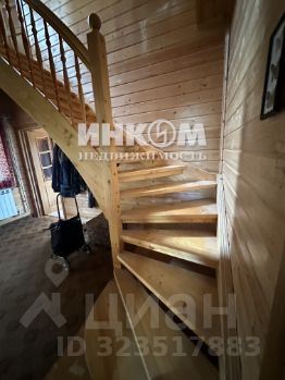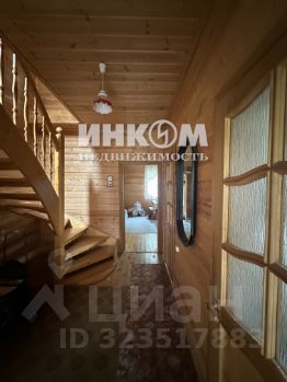 В гостиной работающий камин, высокие потолки, широкая лестница на второй этаж, дом обшит внутри блок хаусом. Фундамент ленточный.