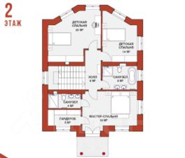 2 этаж: холл, мастер-спальня с с/у и гардеробной, 2 спальни с гардеробными, с/у.