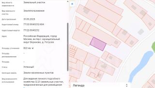 Участок 8,22 сотки в деревне Петрово, Роговское поселение, территория Москвы (Московская прописка, льготы и пенсия). Доступна семейная ипотека по ставке 6%, с минимальным первоначальным взносом!