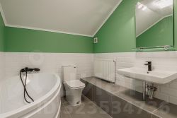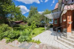 На участке баня, кирпичная, 65 кв м ., беседка, зона барбекю.В доме шесть спален, кухня, каминный зал, кабинет, четыре санузла, полноценное подвальное помещение 40 кв м , гараж на два авто, так же парковка на два авто.