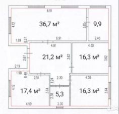 три жилые комнаты 16,3/16,3/17,4 м²