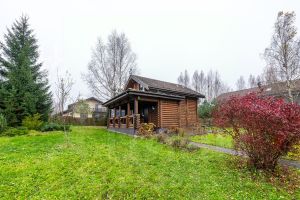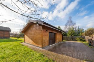 При въезде на участок расположен отдельно стоящий гараж на две машины с местом для хранения садовой техники. На участке много свободного пространства для отдыха: ухоженный газон, декоративный уголок с большими хвойными деревьями, площадки на открытом воздухе.