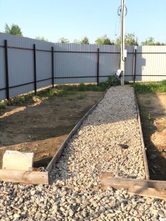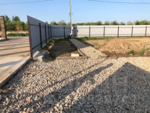 На территории уже выполнены значительные работы: пробурена скважина глубиной 200 метров, залит фундамент, установлен септик и колодец. Площадка для автомобиля и дорожки засыпаны щебнем.