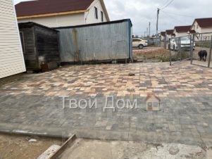 Двор в тротуарной плитке а также сделана дорожка к крыльцу!