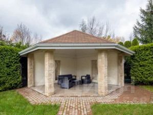 Участок оформлен ландшафтным дизайном и полностью ограждён живой изгородью из вечно зелёных туй, создающей ощущение приватности и уюта круглый год.