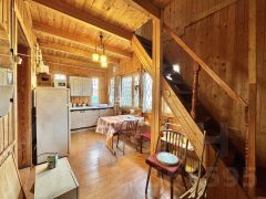* Первый этаж: кухня (пристройка из бруса), гостиная и две изолированные комнаты.