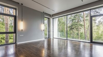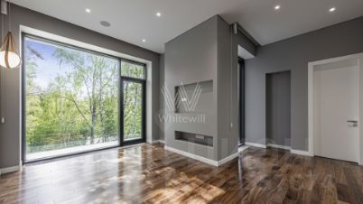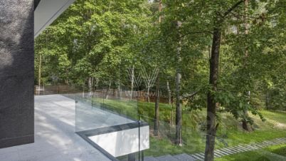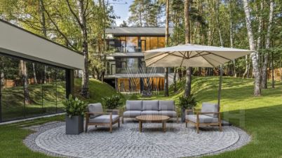 Главной точкой притяжения стала просторная гостиная с камином, объединённая с кухней-столовой с удобным островом. Для отдыха и расслабления обустроены три спальни, вместительные гардеробные и роскошная спа-зона, включающая сауну и хаммам с остеклением "в пол". Дополнительными преимуществами стали квартира для персонала с двумя спальнями и навес для автомобилей. На участке насладитесь тишиной и ароматом хвои, прогуливаясь по пошаговым дорожкам в тени вековых деревьев. Здесь вас ждет уютная беседка с зоной для барбекю, из которой открывается прекрасный вид на пруд.