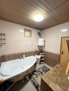 — Первый этаж — просторная светлая кухня-гостиная, раздельный санузел и отдельное помещение, уже подготовленное под баню (осталось только установить печь!).