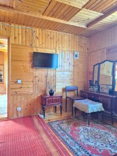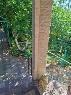 На участке имеется двухэтажный гостевой дом, первый этаж которого кирпичный, а второй - деревянный. На первом этаже расположены застеклённая веранда с кирпичной печью-мангалом, душевой, парилкой, комнатой отдыха, коридором и туалетом. На втором этаже комната для банкетов. На второй этаж ведёт лестница из деревянных ступеней на металлическом каркасе. Балкон застеклённый, на чердаке кладовая.