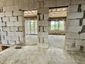 Стены из газоблока 400 мм с великолепной облицовкой бурым кирпичом, красивая Баварская кладка идеально выполнена опытными мастерами.