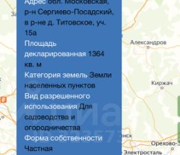 Земельный участок 13,64 соток в живописном селе Титовское Сергиево Посадского района Московской области. Участок ровный, ничем не обрабатывался, плодородная, отдохнувшая земля для ведения приусадебного хозяйства, выращивания цветов, газонов, овощных, плодовых и декоративных культур.