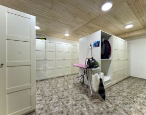 Цокольный этаж: спальня, большая гардеробная, постирочная с с/у, творческая комната, кладовая, кинотеатр, бойлерная.