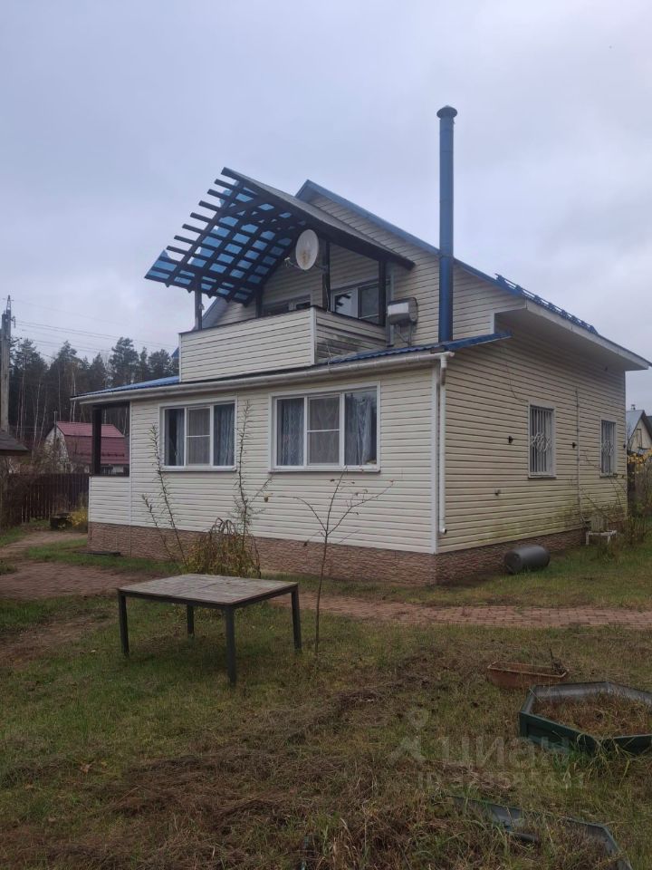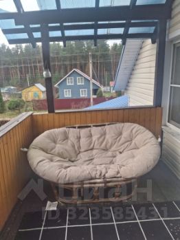 Двухэтажный дом 120 кв метров из высококачественного соснового бруса с двусторонним утеплением слоями по 20 см стоит на свайном фундаменте, покрыт сайдингом песочного цвета. Крыша синий металл. Две веранды закрытая отапливаемая с большими окнами и открытая.