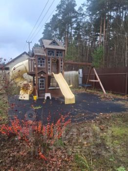 Собственный детский городок с качелями, двухэтажным игровым замком, горкой и горкой-трубой.