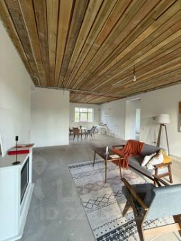 - Малая часть дома площадью 70 квадратных метров располагает двумя спальнями, двумя санузлами и просторной кухней-гостиной также с выходом на террасу.