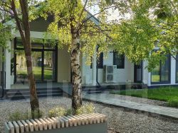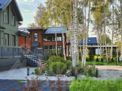 Домовладение находится на закрытой и строго охраняемой территории проекта Open Village, входящего в состав коттеджного посёлка "Грин Лаундж". Территория поселка занимает площадь около 10 Га, где возведены около 70 жилых объектов, что обеспечивает каждому владельцу недвижимости максимальный уровень приватности и спокойствия. Сегодня большинство зданий уже введены в эксплуатацию, некоторые дома успешно реализованы и заселены постоянными жителями. Инфраструктура посёлка активно развивается: благоустроены удобные подъездные дороги с качественным асфальтом, установлены фонари уличного освещения, продолжается благоустройство зелёных зон, создана детская игровая площадка возле небольшого декоративного водоёма, организовано пространство для взрослых с местами для барбекю, обустроенными парковыми зонами с удобными лавочками и беседками, дополнительно проектируются спортплощадки для активного досуга жителей. Основное строительство в посёлке завершилось, благодаря чему территория остаётся тихой и чистой, свободной от строительного шума и пыли.