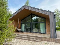 Вся конструкция дома выполнена из фанеры (марка фанеры ФСФ - фанера повышенной прочности и водостойкости, толщиной 18 мм. Силовая рама из фанеры имеет толщину в сечении 140 мм. Все элементы модулей выполнены с высокой точностью на станках с ЧПУ. Сборка конструктива осуществляется с помощью фиксации саморезами деталей, имеющих соединение "шип- паз".