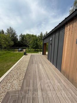Внешняя отделка: металлические листы с соединением фальц и фиброцементные панели.