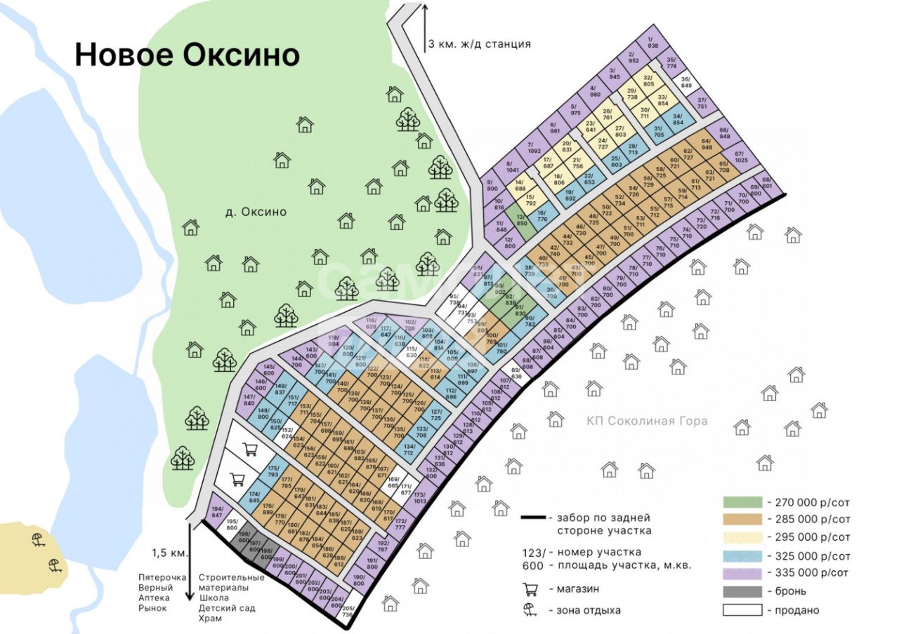 Открыты продажи земельных участков в КП "Новое Оксино", Чеховский район! КП новое, есть выбор удачно расположенных участков, можно купить 2 соседних и объединить, либо рядом с лесом, или дорогой. Подальше от въезда или поближе. Выбор есть, приезжайте! Продажа от собственника! Асфальтированный подъезд к поселку. В КП "Новое Оксино" более 200 участков. Площадь участка варьируется от 6 соток до 10 соток, возможно объединение нескольких участков. Цены начинаются от 270 тр/сотку. В КП "Новое Оксино" выполнено благоустройство территории, все участки ровные правильной формы, имеют асфальтированный подъезд, выполнен дренаж поселка. Участки размежеваны. В округе имеется 3 водоема для купания, рыбалки, рядом лес. Членских взносов нет, электричество по прямому договору с "Россетями". Удобный подъезд, до Москвы по скоростному шоссе 50 км без светофоров. Ж/д станция платформа "298 км" - 3 км, автобусы до г. Чехов и г. Москвы. Сетевые супермаркеты, стройрынок, фермерские продукты, ПВЗ "WB" и "Озон". В деревне Васькино имеются МФЦ, поликлиника, школа, дет сад. Рядом находится парк приключений "Дикие белки", конноспортивный клуб, усадьба "Мелихово", святой источник "Талеж" и др. Возможна покупка как за наличные, так и в ипотеку, возможна рассрочка (условия обсуждаются индивидуально при просмотре). Арт. 124627583