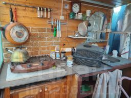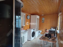 В доме выполнен ремонт, есть просторная кухня-гостиная и уютный спальный уголок. Все коммуникации собраны в одном месте и скрыты в шкафу, экономя пространство в ванной. Под крышей есть чердак, также под домом и гаражом есть пространства для хранения. На участке есть еще небольшой однокомнатный домик с чердаком, летняя кухня и сарай.