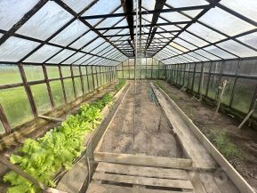 Освещенный участок 35 соток. На участке расположены: теплица, отдельно стоящая баня, гараж, сарай и зона барбекю.