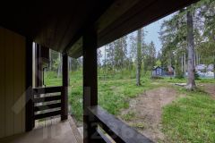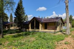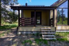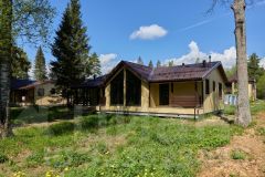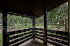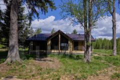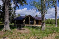 При строительстве дома использовались антисептированные пиломатериалы камерной сушки. Утепление выполнено перекрестной укладкой, общей толщиной 200 мм из эффективного плитного базальтового утеплителя. Металлочерепица - Grаnd linе Сlаssiс с системой снегозадержания. Окна пластиковые Rеhаu Grаziо 70, фурнитура Rоtо. Дверь входная Тоrех Snеgir с терморазрывом, двери террасные Rеhаu Dооrs, водосточная система Dосkе. Внешняя отделка дома выполнена имитацией бруса 16х135, камерной сушки, окрашенной в заводских условиях. Полы террасы обшиты импрегнированной доской.