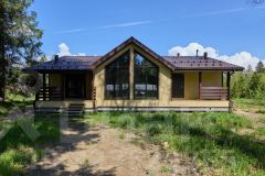 Одноэтажный коттедж для постоянного проживания в коттеджном посёлке бизнес класса Счастье, в окружении леса. Круглосуточная охрана, видеонаблюдение, пешеходные зоны, собственный выход в лес, все это позволит с комфортом и в безопасности проживать в этом современном доме.