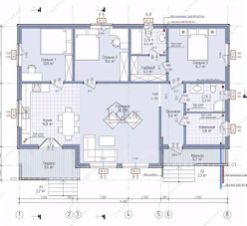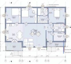 Планировкой предусмотрено: кухня-гостиная, три спальни, два санузла, котельная, терраса и веранда. В гостиной предусмотрено панорамное остекление и выход на террасу. В мастер-спальне расположены вместительная гардеробная комната и санузел. Дом предлагается без внутренней отделки.
