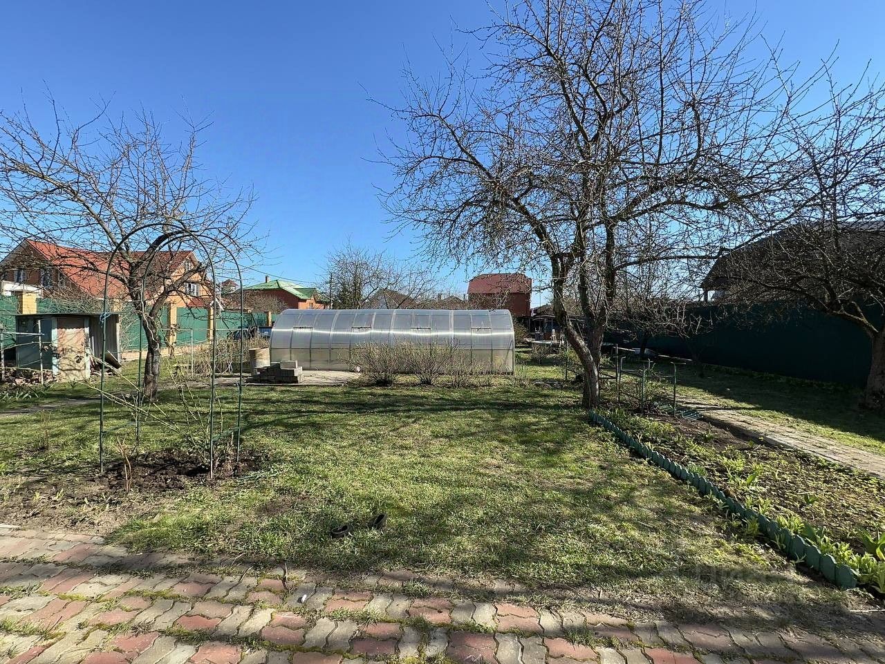 На участке расположены: большая теплица для выращивания собственных овощей и фруктов, плодовые деревья. Удобный заезд с автоматическими воротами и возможностью парковки для двух автомобилей.