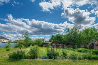 На участке расположена баня, шашлычная зона и еще один летний двух этажный дом, также посажены ягодные кустарники (черная и красная смородина, крыжовник, малина, ежевика, клубника), плодовые и хвойные деревья (наивкуснейшие яблоки, сливы, вишня, барбарис, груши), цветы и газон.
