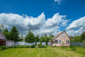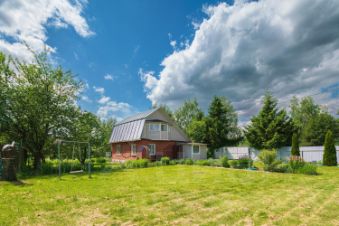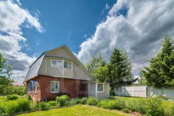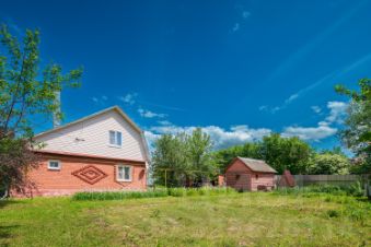 Дом 83,7 кв.м на двух участках общей площадью 16 соток. Дом кирпичный, второй этаж обтянут сайдингом, внутри обит вагонкой. Есть терраса и балкон.