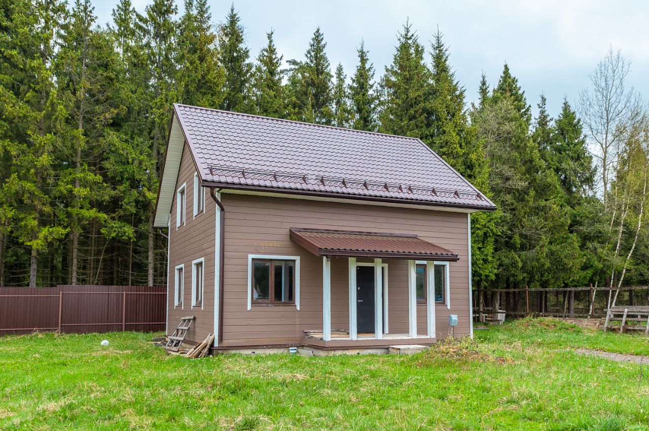 Дом имеет двускатную крышу, навес крыльца одиноскатную.