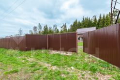 Участок ровный, правильной геометрической формы близкой к квадрату, абсолютно сухой. На участке проведены работы по планировке, оборудован въезд, имеется подъезд к дому. Ограждение со стороны леса и дороги из профлиста, имеется калитка с выходом в лес.