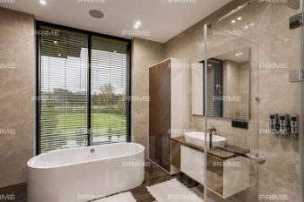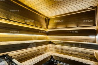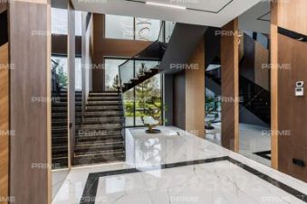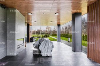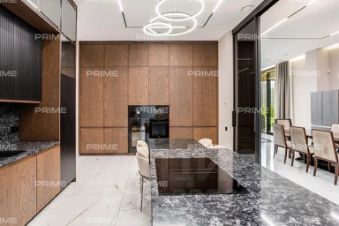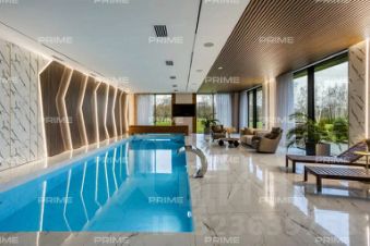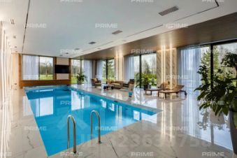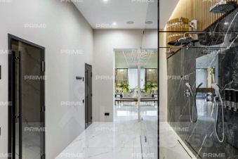Первый этаж встречает просторным холлом с большой гардеробной и постирочной зоной. Здесь расположены кухня, столовая с выходом на открытую веранду с дровяным камином-барбекю, гостиная с паровым камином, кабинет, гостевой санузел, котельная и гостевая спальня. Особое внимание заслуживает спа-зона площадью 200 кв. м: три душевые с обливным ведром, хаммам с эффектом "звёздного неба", сауна с панорамным остеклением в бассейн, плавательный бассейн 105 м и зона отдыха с мягкой мебелью, шезлонгами и ТВ - всё это с выходом на террасу.