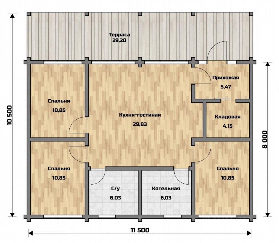 • Coвременный дом в 1 этаж, площадь 120м2, в т.ч. терраса 20м2