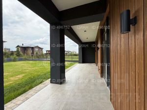 Новый готовый к проживанию дом под ключ, с мебелью, камином, навесом для машин. Большой участок. Вечернее солнце.
