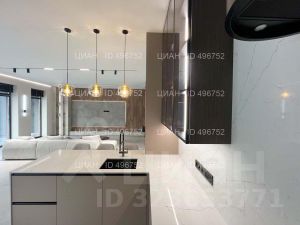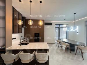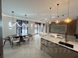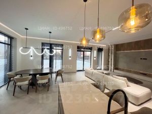 Высота потолка первого этажа 3,3 м. Гостиная-столовая-кухня более 70 метров.