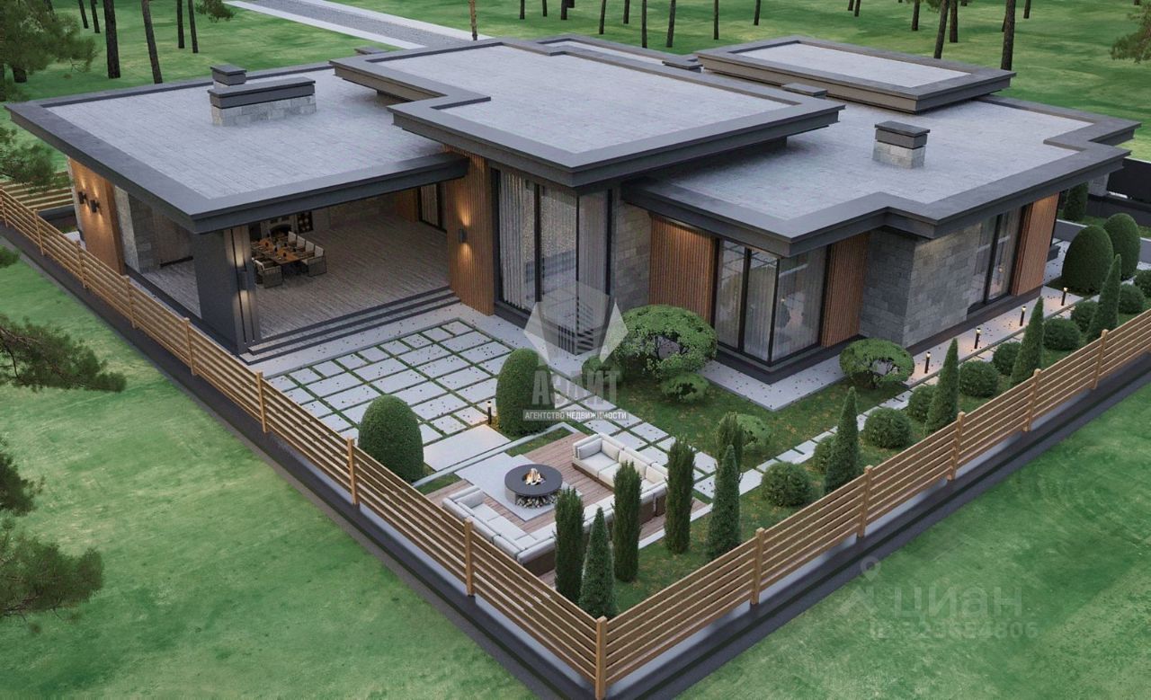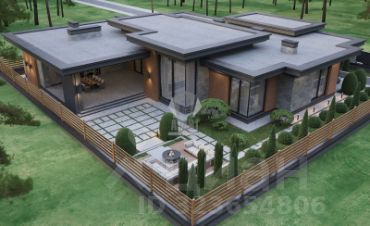 Индивидуальный проект одноэтажного дома с разноуровневой плоской крышей и нестандартной формой, общей площадью 440 кв м, включает просторную прихожую, 2 гардеробных, 2 хозяйственных комнаты, большую светлую гостинную-столовую с увеличенными потолками за счет разноуровневой крыши, кухню, 4 спальни, 4 сан. Узла. , котельную, паркинг на 2 машины (с входом сразу в дом), а так же спа-зону с отдельной ванной и душевой, сауной и хаммам. Открытое патио 80 кв м.