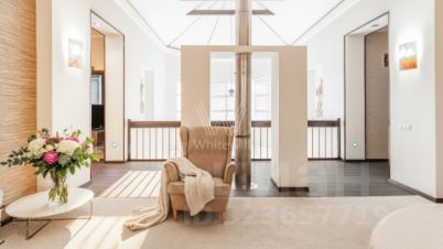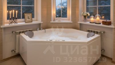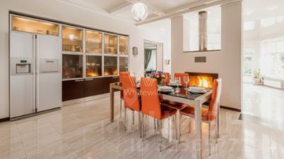 Мещерский. Загородный коттедж площадью 400 м² расположен на живописном полевом участке 13 соток. Фасад, выполненный в европейском стиле, облицован нежно-розовой штукатуркой и благородным клинкерным кирпичом, а также украшен рустовкой. Большие окна и второй свет визуально расширяют пространство и создают ощущение свободы. Интерьеры оформлены в светлых тонах и полностью укомплектованы комфортной мебелью, встроенной бытовой техникой и элегантными предметами декора. Для идеального микроклимата установлена система кондиционирования LG.