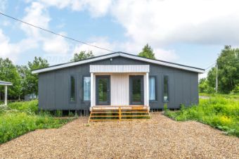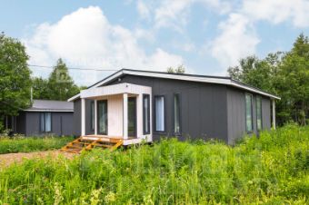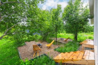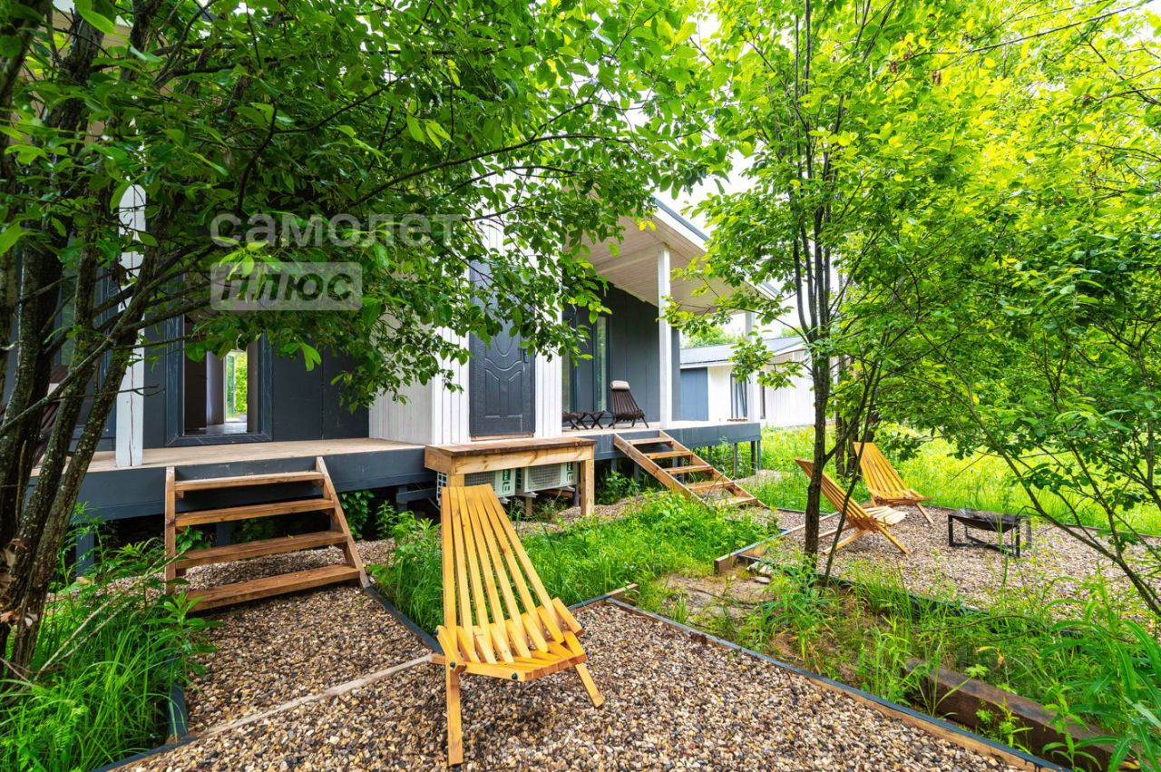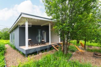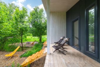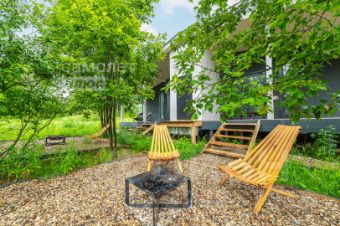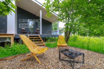 Дом имеет две симметричные квартиры, полностью разделенные друг от друга общей стеной. В квартирах одинаковая меблировка, 100% обустроеные для проживания внутренние зоны, в т.ч. имеющие бытовые приборы, кровати, оборудованные санузлы, места для отдыха и принятия пищи. Каждая имеет собственный вход и отдельный выход на свою часть террасы и придомомую территорию. Оборудовано одно машино-место (возможно оборудовать второе). К каждой вартире примыкает собственный земельный участок площадью 300 м.кв. Отделка пола - паркетная доска, стены и потолок - белая штукатурка. Дом построен по каркасной технологии, теплый, энергоэффективный, экономичный в вопросах содержания в том числе в зимний период времени.