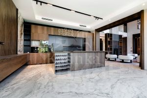 1 этаж: прихожая, гардеробная, холл, гостевая спальня с с/у, кинотеатр, каминный зал со вторым светом, кухня, столовая с выходом на участок, с/у, гараж на 2 м/м с комнатой водителя, СПА-зона: комната отдыха, бассейн (16м) с противотоком, душ, хамам, сауна, выход на террасу.