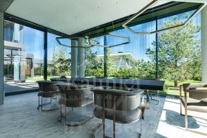 Предлагается стильный коттедж 1 041 кв.м в центре поселка Миллениум парк. В доме панорамные окна, просторные и светлые помещения, установлена приточно-вытяжная вентиляция.
