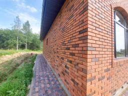 Стены из газоблока 300 мм. Кровля из гибкой черепицы. Окна двухкамерные, с толщиной профиля 70 мм. Входная дверь с тепло-шумоизоляцией и антикоррозийной защитой.