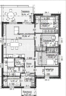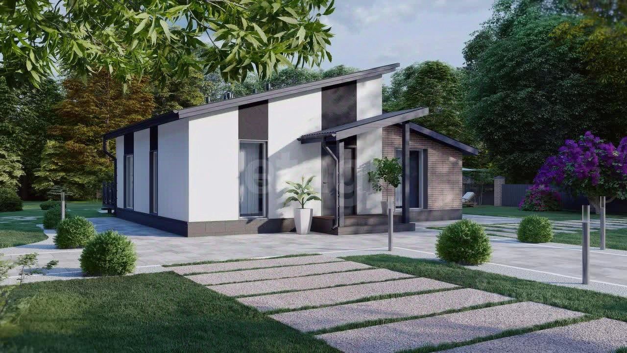 В доме 3 спальни и просторная кухня-гостиная с окнами в пол.
