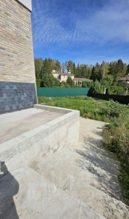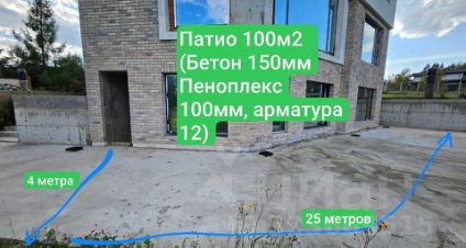 Вокруг дома выполнены бетонные архитектурные формы патио 100м2, лестницы 2шт , парковка 2шт (5 машино мест), входная группа.