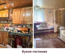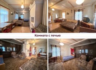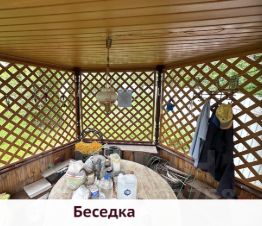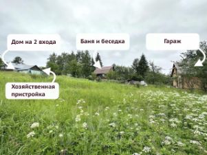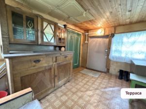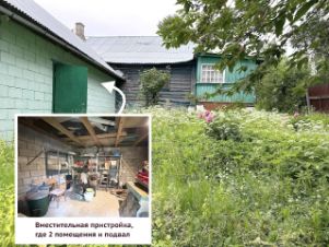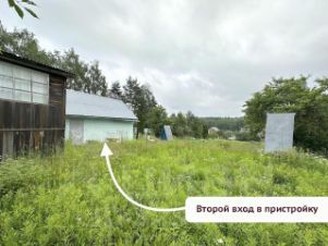 - Основной дом. Площадь дома составляет 85.1 м². Фундамент - кирпичный. Крыша - металлическая. Материал стен - бревно. Высота потолков в доме 2.5 метров. Установлены деревянные окна. Дом разделен на две части, в первой части располагаются: веранда, кухня и комната. Во второй части находятся: веранда, кухня и просторная комната.