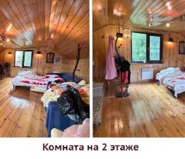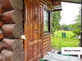 - Баня с комнатой отдыха. Площадь дома составляет 64.5 м². Материал стен - бревно + каркасно-щитовые, обработаны герметиком. Фундамент - ленточный армированный. Проведено грамотное зонирование - это создает эффект свободного пространства, который можно выгодно оформить с помощью дополнительных деталей и обыграть на ваш вкус. Что делает проживание в доме более комфортным, положительно влияет на настроение жильцов. На первом этаже бани располагаются: терраса, просторная кухня-гостиная, душ и парилка. На втором этаже находится просторная комната. Рядом дорожки выложены плиткой.
