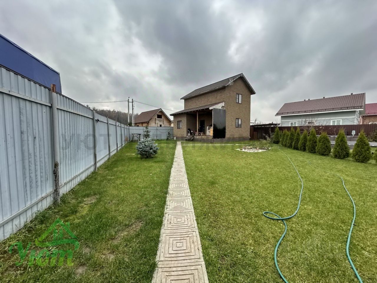 Участок ухожен, высажено 25 туй, со временем они образуют зону релакса на участке. Сейчас там располагаются бассейн, батут, мангальная зона.