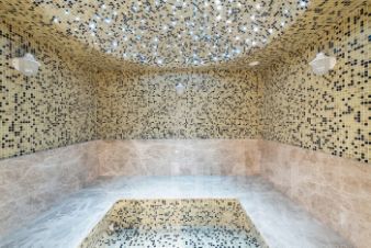 1-й этаж: входная группа, холл, кухня-столовая, просторная гостиная с камином, кабинет, санузел, хамам с бассейном и выходом на террасу, гараж, технич.комната;