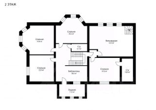 2-й этаж: 3 спальни, 1 санузла, мастер-спальня с ванной комнатой, бильярдная, библиотека, просторный утепленный балкон;